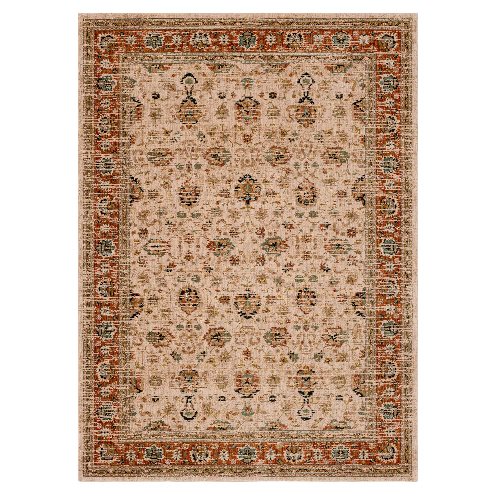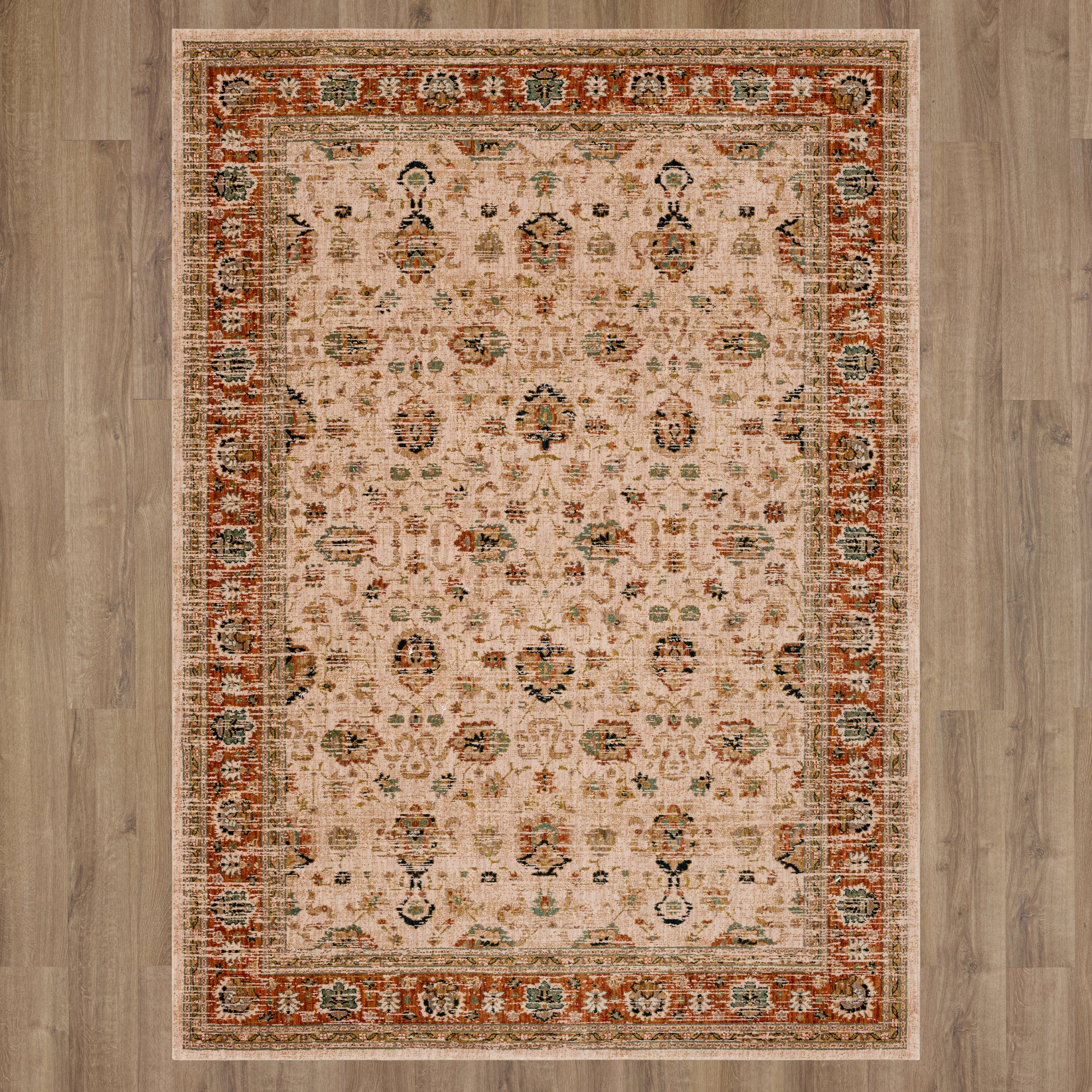 Infuse your space with timeless old world style in vibrant new colors with the Koyna Area Rug, a designer debut of Karastan's Spice Market Collection. The neutral cream colored base features space dye striations throughout and is framed with a red spice colored border. Made from premium polyester fibers, the Karastan® Spice Market collection offers rugs with thick, sumptuous softness, inherent stain resistance, and vivid color clarity.